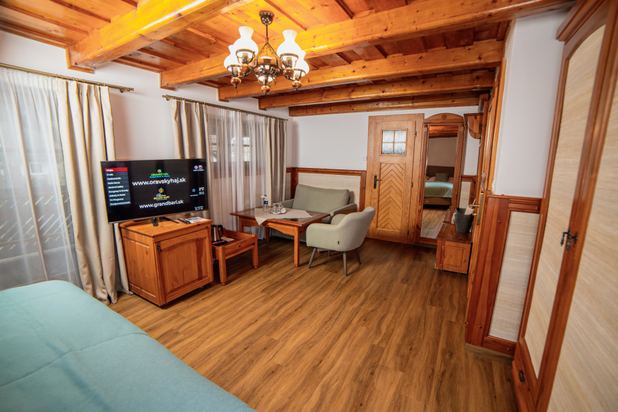 Izby sú navrhnuté pre našich hostí, aby im priblížili vidiecku kultúru a návrat k prírode, ale poskytli luxus a komfort, na ktorý sú zvyknutí. Disponujú dvomi pevnými lôžkami s komfortnými matracmi, ktoré si nechávame zhotovovať na mieru. Do týchto izieb je možné umiestniť prístelku. Samozrejmosťou je vybavenie samostatnou kúpeľňou s WC, TV a ďalším vybavením.