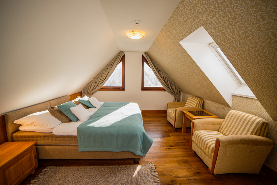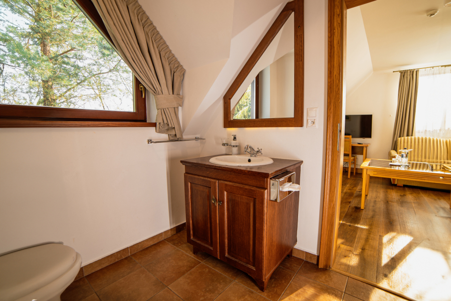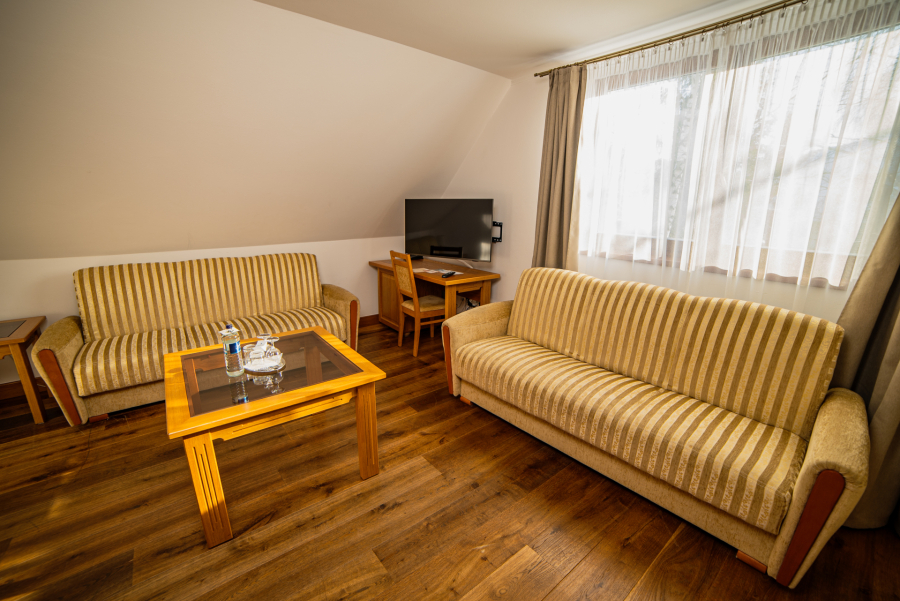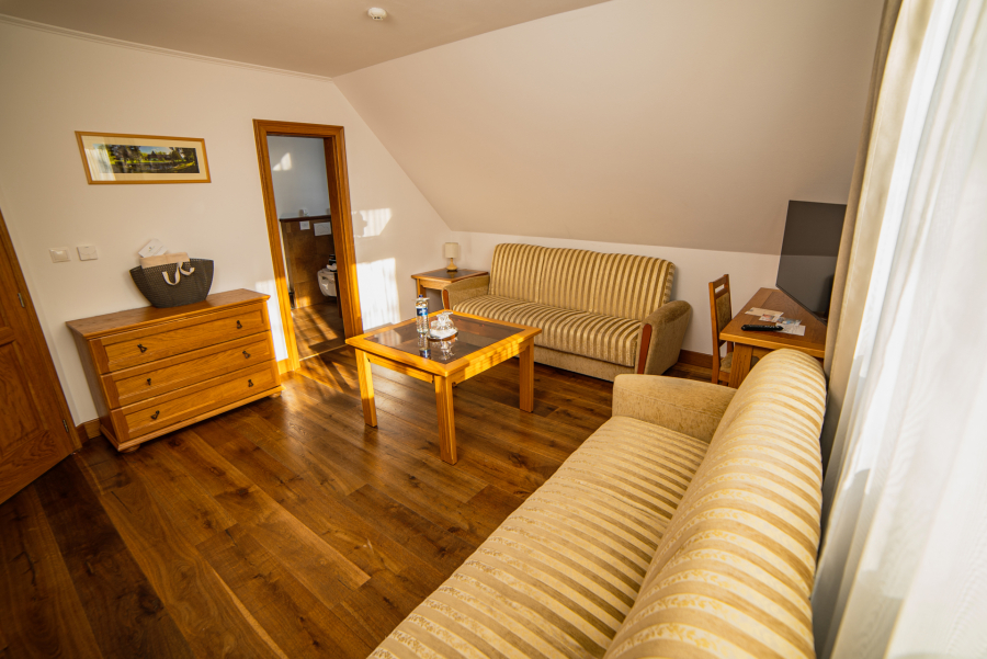 Priestranné apartmány sú navrhnuté pre našich hostí tak, aby im priblížili vidiecku kultúru a návrat k prírode, ale poskytli luxus a komfort, na ktorý sú zvyknutí. Disponujú dvomi pevnými lôžkami s komfortnými matracmi, ktoré si nechávame zhotovovať na mieru. Do týchto izieb je možné umiestniť až dve prístelky. Navyše majú oddelenú spálňovú a obývaciu časť, samozrejmosťou je vybavenie samostatnou kúpeľňou s WC, TV a ďalším vybavením.