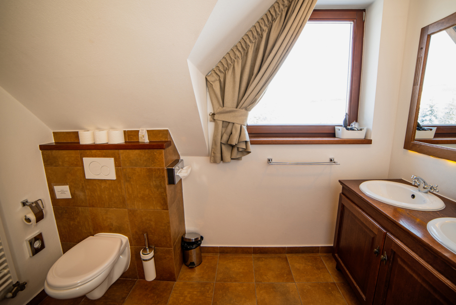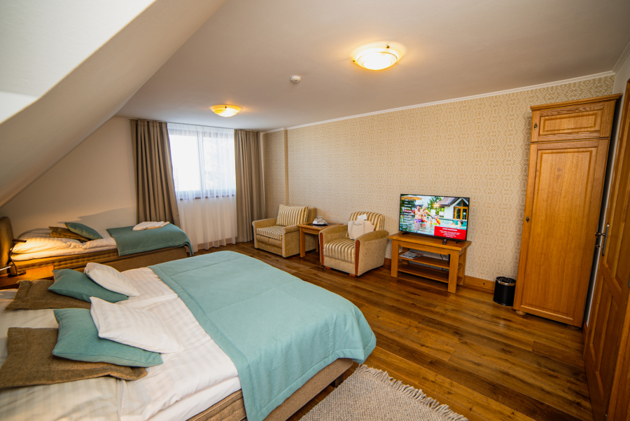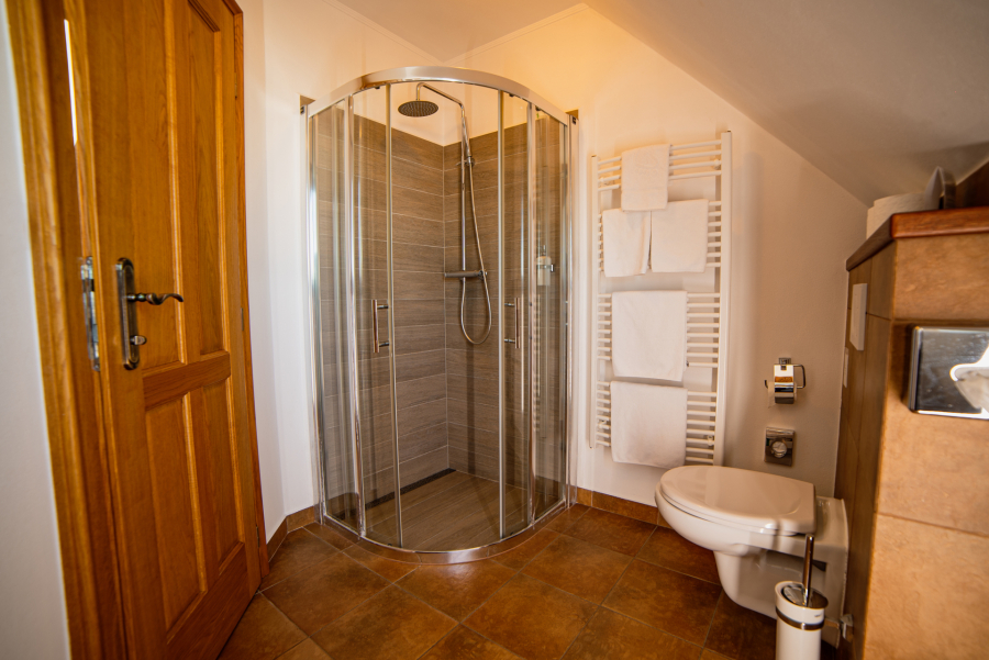 Priestranné izby sú navrhnuté pre našich hostí tak, aby im priblížili vidiecku kultúru a návrat k prírode, ale poskytli luxus a komfort, na ktorý sú zvyknutí. Disponujú tromi pevnými lôžkami s komfortnými matracmi, ktoré si nechávame zhotovovať na mieru. Do týchto izieb je možné umiestniť jednu prístelku. Samozrejmosťou je vybavenie samostatnou kúpeľňou s WC, TV a ďalším vybavením.